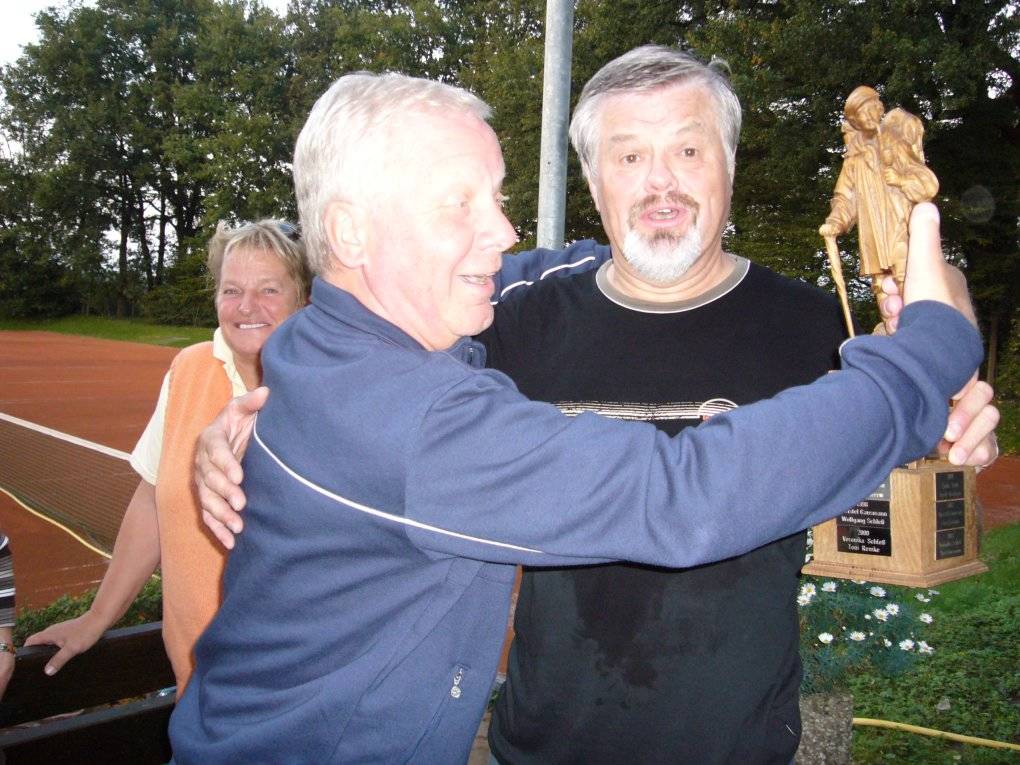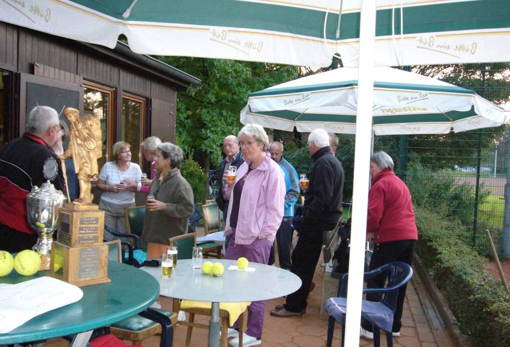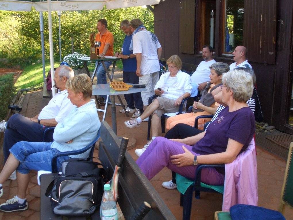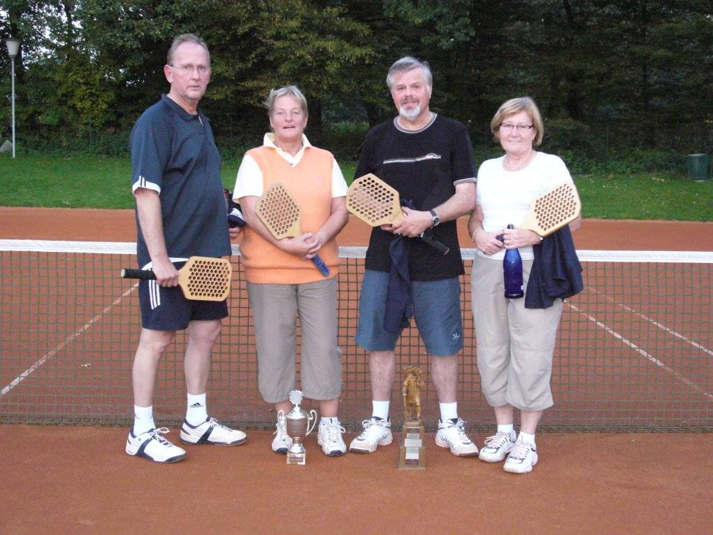 Nach einem gemeinsamen Frühstück bescherte der besondere Spielmodus den gut aufgelegten Teilnehmerinnen und Teilnehmern zwei Spiele jeweils im Damen- und Herrendoppel und zwei weitere Spiele im Mixed, so dass alle Aktiven mindestens vier Spiele absolvieren konnten Die nach dem Punktesystem besten Damen und Herren bestritten das Endspiel. Hier standen sich Christel Gausmann mit Gerd Riediger und Veronika Schleß mit Wolfgang Linsel gegenüber. Das Endspiel endete mit einer Überraschung. Mit einem hart umkämpften Zweisatzsieg gegen das heimlich als Favoriten gehandelte Doppel, siegten Veronika Schleß und Wolfgang Linsel. Sie nahmen die Wanderpokale entgegen und alle Endspielteilnehmer erhielten noch zusätzlich kleine Präsente.
