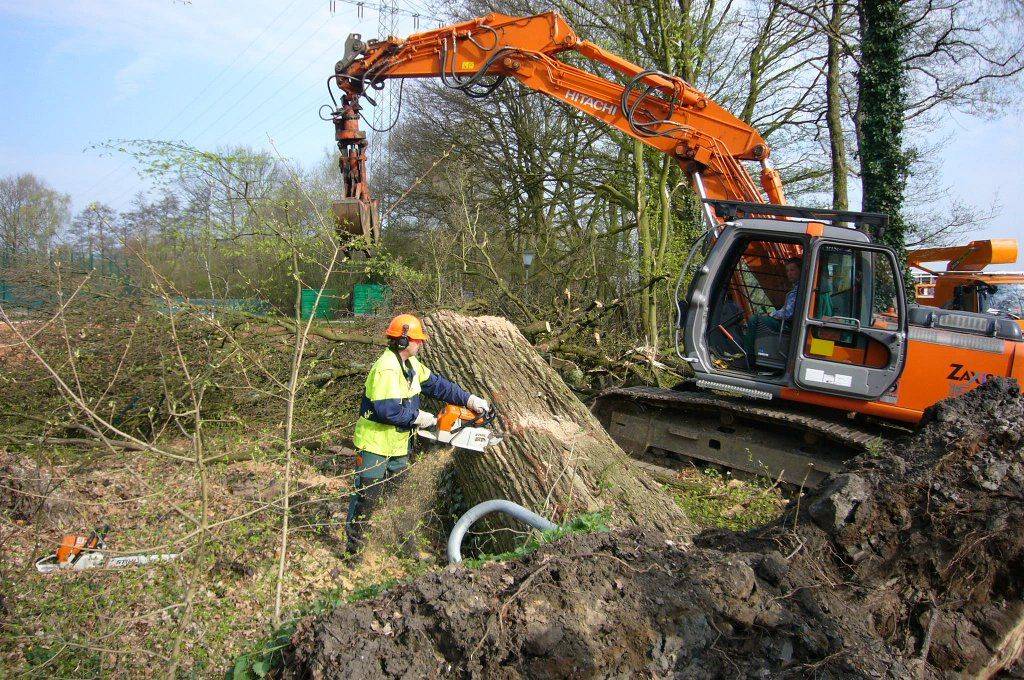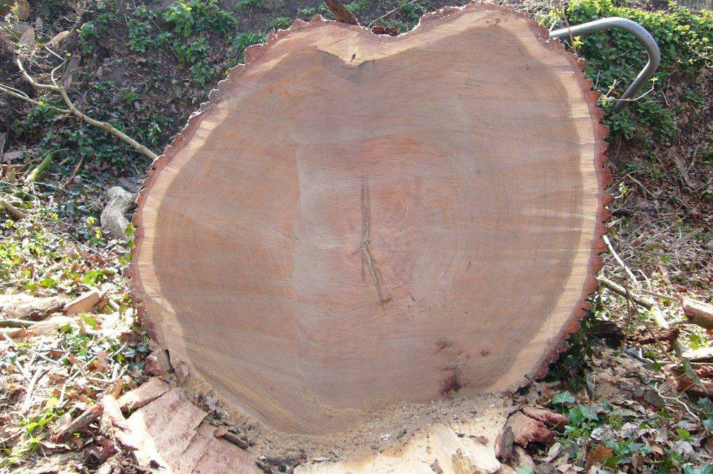 Direkt am Dienstag (7.4.2009) wurde die umgestürzte Eiche zersägt. Die imposanten Reste sind noch auf der anderen Seite des Weges