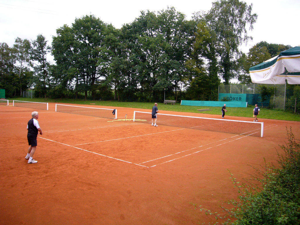 Beim Herren-Doppel-Turnier am Samstag, 30.7., war der Wettergott milde gestimmt. Das Turnier fand im Verhältnis zu den vorangegangen Tagen unter ungewöhnlich guten Wetterbedingungen statt. Ungewöhnlich war auch diesmal der Turniermodus. Die Jung- und Altsenioren wurden in Gruppen aufgeteilt und es wurde jeweils der Gruppensieger ermittelt.