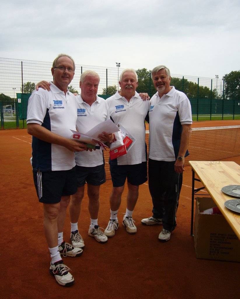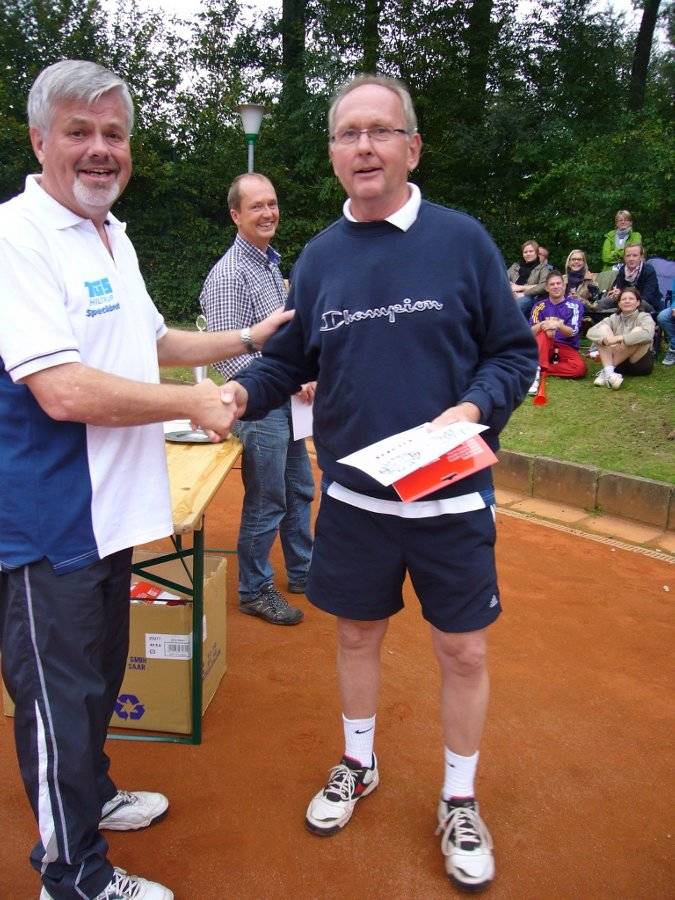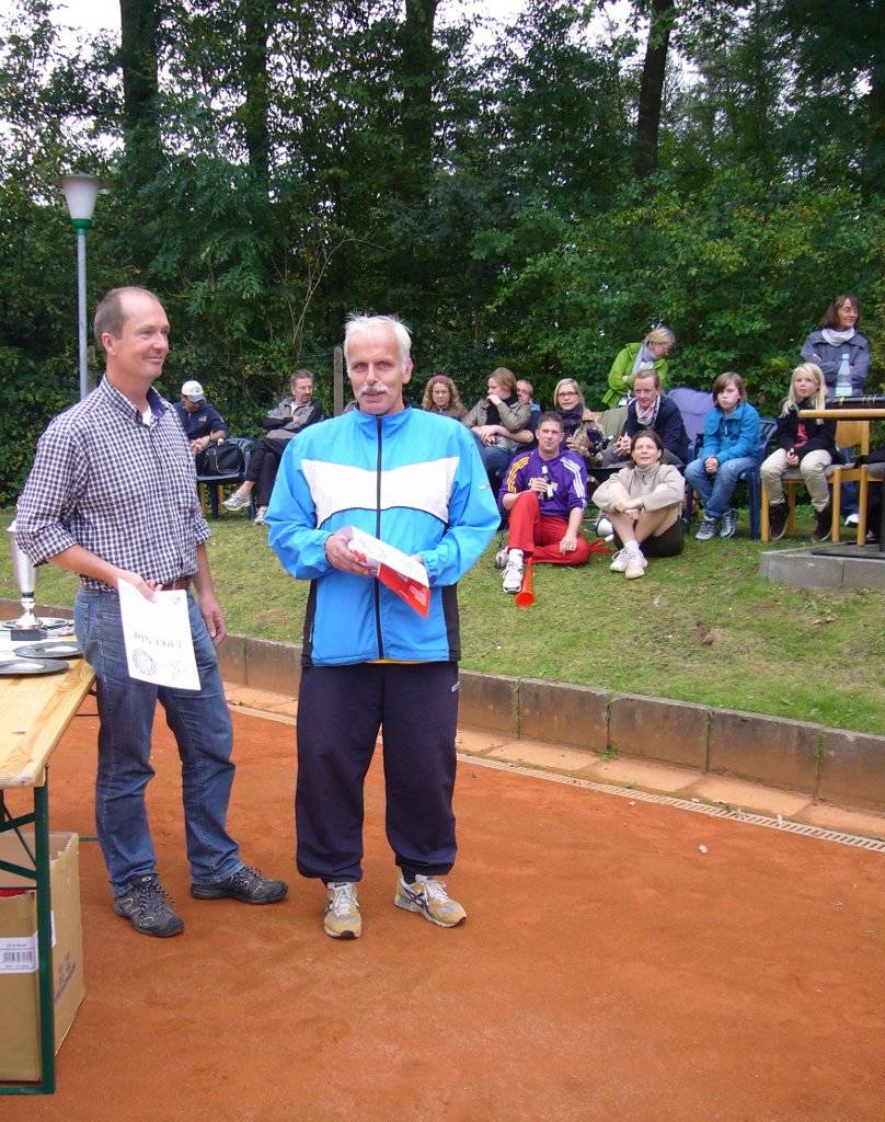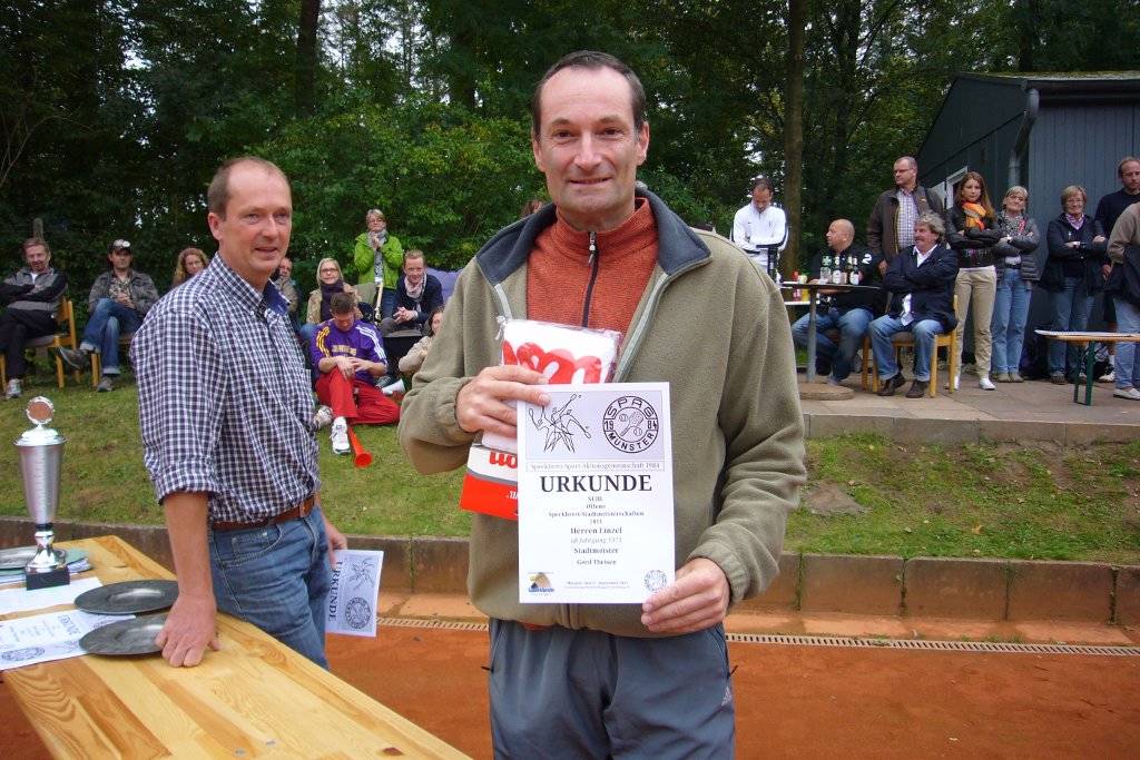 So zum Beispiel für Manfred Arndt und Gerd Theisen vom SVSH. Ungefährdet gewannen sie ihre Einzel bei den Senioren 50+ bzw. Jungsenioren 40+ gegen Jürgen Breforth (SVSH) und Ralf Berger (TuS). Später legten Arndt und Theisen im Senioren-Doppel 45+ noch nach. Das reine SVSH-Endspiel gegen die Titelverteidiger Martin Ernst/Stephan Kriwet hätte jedoch auch anders ausgehen können. Erst beim 21:9 im letzten Durchgang wurden die Verhältnisse klar und Rekordstadtmeister Arndt hatte seinen 22. Titel unter Dach und Fach. Vier TuS-Senioren waren schließlich im Doppel 60+ unter sich und konnten allesamt zufrieden sein. Sowohl Toni Remke und Gerd Riediger, weil sie ihren Titel von 2010 wiederholen konnten, als auch die Herausforderer Karl-Heinz Beyer/Wolfgang Linsel, weil sie den Favoriten das Leben zwei Sätze lang schwer gemacht hatten.