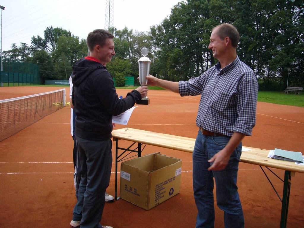 Im Sonderklassen-Doppel machte Christoph Hagedorn an der Seite von Michael Thiemann dann seinen zweiten Titelgewinn des Tages perfekt. Die Titelverteidiger siegten in zwei knappen Sätzen, aber letztlich verdient gegen die Sentrup-Sudmühle-Kombination Timo Höppner/Dirk Nordhaus. Die Herren Marcus Perschke und Paul Rieke bleiben vorerst also die letzten, die ein Doppel gegen Thiemann und Partner – damals Michael Roloff – gewinnen konnten. 1997 war das. Seitdem hat „Miki“ unglaubliche 27 Doppelmatches in Folge gewonnen.