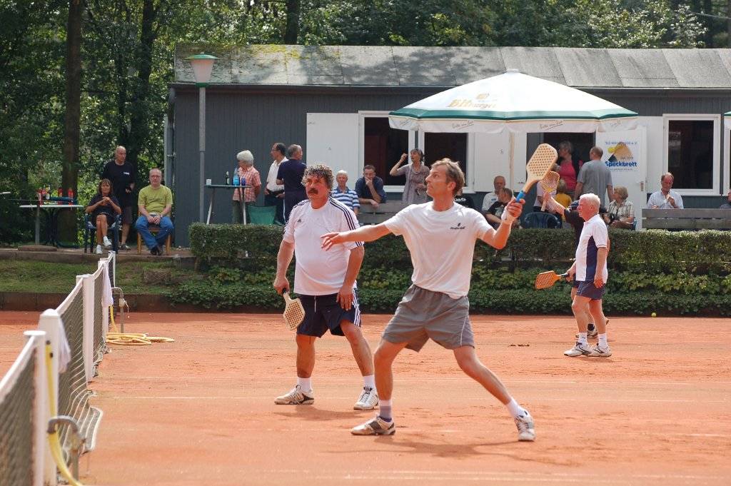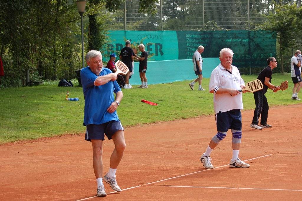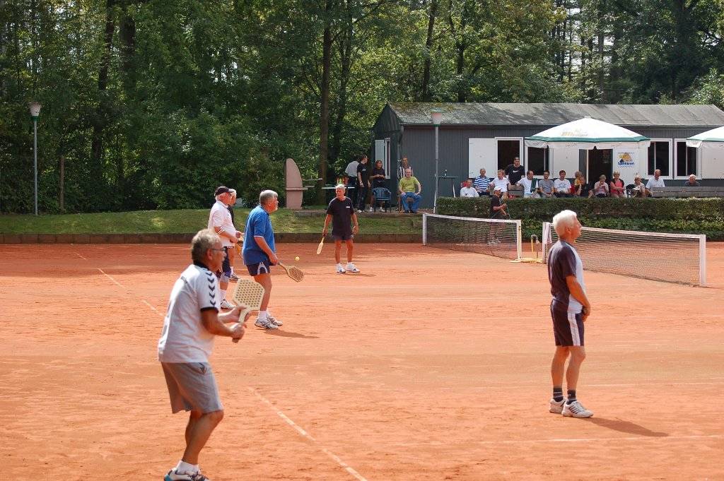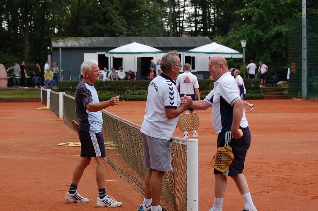 Spannung hatte schließlich auch der Sonntag in Hiltrup zu bieten. Im Doppel der mindestens 60jährigen hat sich eine rein Hiltruper Finalpaarung gebildet. Die Titelverteidiger Toni Remke/Gerd Riediger treten gegen Karl-Heinz Beyer und Wolfgang Linsel an. Die an zwei gesetzten Wolfgang Körner/Franz-Josef Möllerbernd (SVSH) verpassten bei ihrem dritten gemeinsamen Start erstmals das Finale dieser 2008 eingeführten Klasse und wurden Dritte. Auch in der Altersklasse 45+ stehen mit Martin Ernst/Stephan Kriwet die letztjährigen Sieger im Finale, wo sie in einer reinen SVSH-Begegnung auf ihre Vorgänger Manfred Arndt/Gerd Theisen treffen. Ralf Berger/Winfried Mangels (TuS Hiltrup) belegten hier Platz drei.