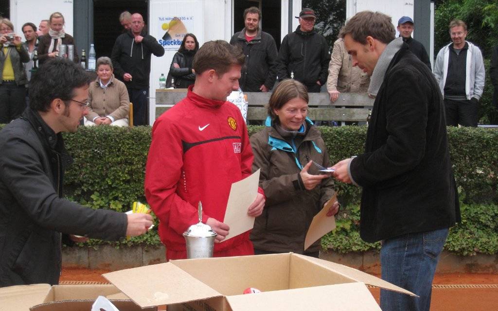 Der Shooting-Star der offenen Klassen ist Marcus May. Der vereinslose Hartplatzspieler gewann zunächst an der Seite von Leonard Schmidt das Doppel gegen Ralf Berger/Peter Frank (TuS), später siegte er auch im umkämpften Einzel gegen den erst 18jährigen Tennisspieler Tobias Hadler mit 21:9, 15:21, 22:20. Hier darf sich die Sonderklasse, in welche auch der Dritte Nils Gottschalk aufsteigt, im kommenden Jahr auf viel frisches Blut freuen.