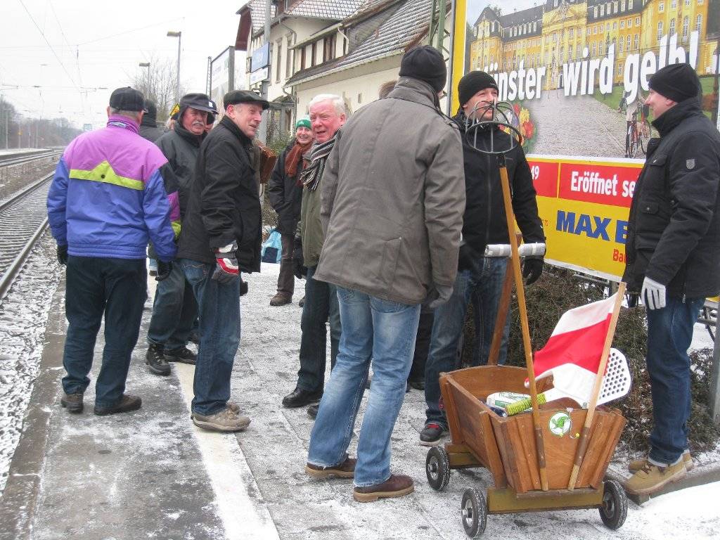 Mittag am Hiltruper Bahnhof ein, um gemeinsam mit dem Zug zum Startpunkt in Drensteinfurt zu fahren. Bei richtig knackigem