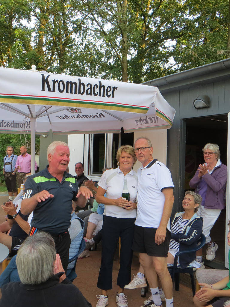 Am späten Nachmittag fiel die Entscheidung. Im Endspiel traf Ulla Tigges mit ihrem Partner Gerd Riediger auf Moni Schleß und Hans Tigges. Nach einem spannenden Finale konnten Ulla und Gerd die Pokale in Empfang nehmen! Mit einer kleinen Siegesfeier wurde dieser Tag harmonisch beendet.