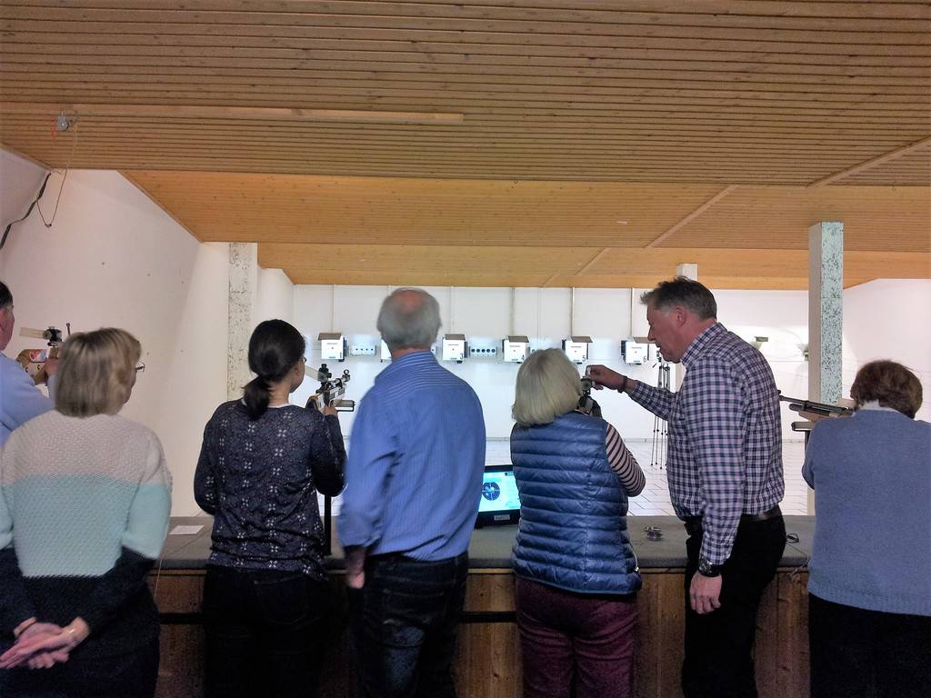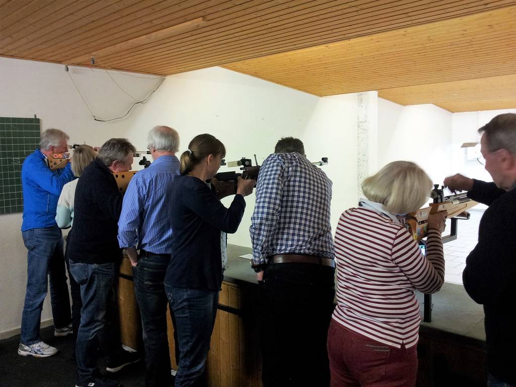 Am vergangenen Samstag waren wir wieder bei den Sportschützen in Hiltrup zu Gast. 22 Teilnehmer/innen ermittelten in verschiedenen Schießdisziplinen den besten Schützen des Tages. Unter anderem wurde im KO-System ein kleines Turnier durchgeführt. Hier hatte der jüngste Teilnehmer Alex Ringer das beste Ergebnis und wurde zum Sieger gekürt. Leider reichte sein gutes Schießergebnis in diesem Wettbewerb, für den Gesamtsieg nicht aus. Hier siegte bei den Damen Sabine Thöne und bei den Herren Theo Gausmann. Beide wurden mit kleinen Sachpreisen belohnt. Für die Ermittlung des Tagessiegers mussten beide noch einmal auf den Schießstand. Hier zeigte sich Sabine Thöne genauso treffsicher wie in den vorangegangenen Wettbewerben. Sie sicherte sich den Gesamttagessieg und den damit verbundenen Wanderpokal. Unser Vorsitzender André Weste, der die Siegerehrung vornahm, bedankte sich bei den Sportschützen für die, wie immer, hervorragende Betreuung und für ihre Gastfreundschaft mit einer Gegeneinladung auf unserer Speckbrettsportanlage. Eine besondere Ehrung von den Verantwortlichen erhielt Theo Gausmann, der an diesem Tag mit einer 10,7 die beste Zehn des Tages geschossen hatte. Der Tag klang mit einem gemeinsamen Grünkohlessen auf der Anlage der Sportschützen aus.