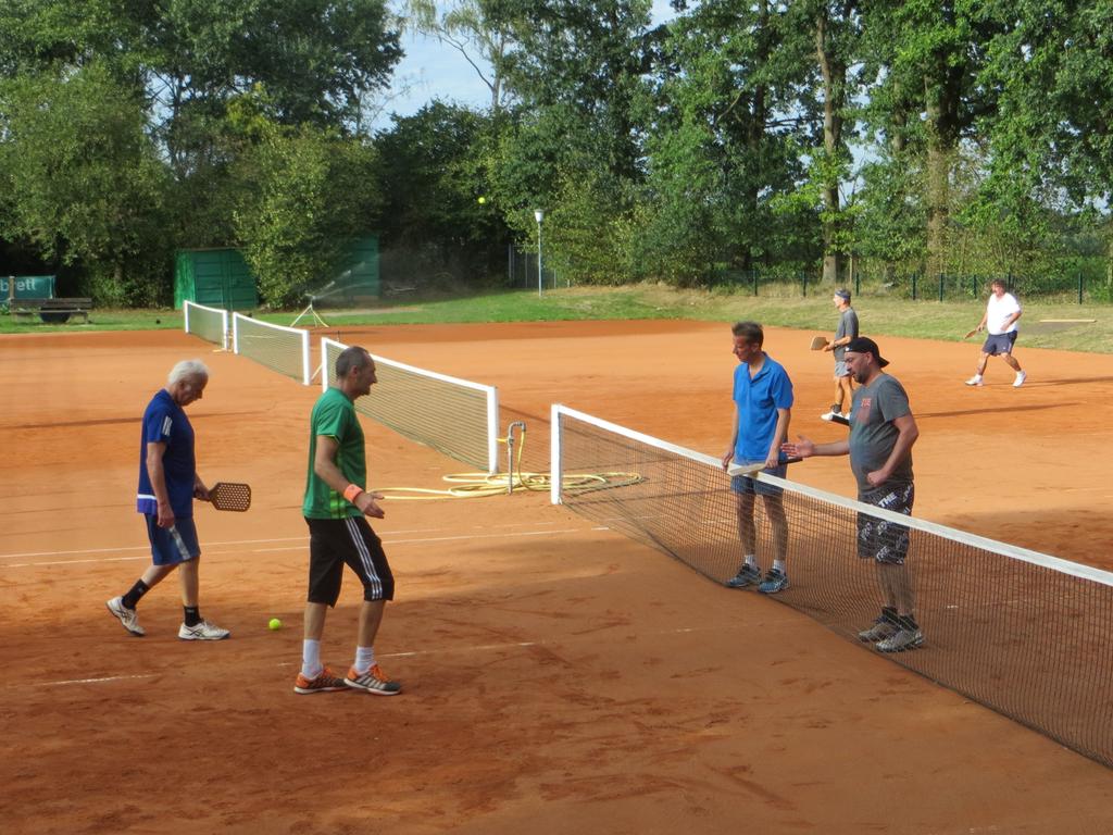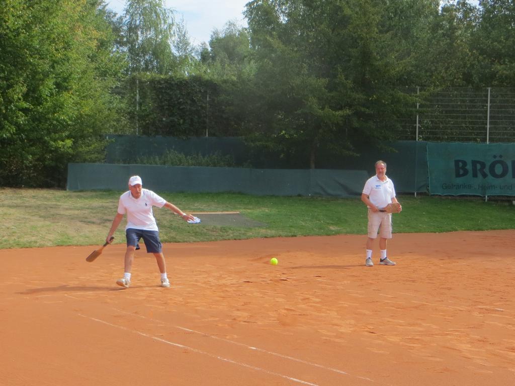 In Hiltrup wurden am Sonntag die Finalisten für das Herren Doppel 45+ und 60+ ermittelt. Im Finale 45+ treffen Martin Lange und Martin Theisen auf Gordon Müller und Jörg Sobetzki. Bei 60+ sind es Toni Remke mit Gerd Riediger und Ludger Niehoff mit Rainer Schmitz.