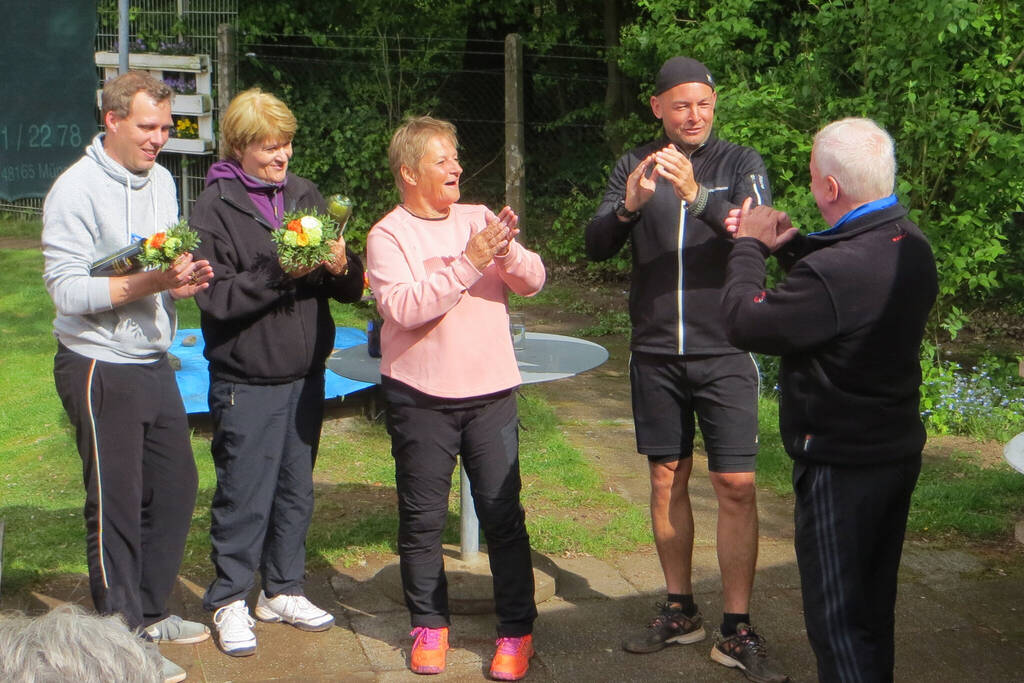Siegerehrung: Marcus Epke, Ulla Tigges, Moni Schleß, Daniel Weste und Toni Remke (v.l.)