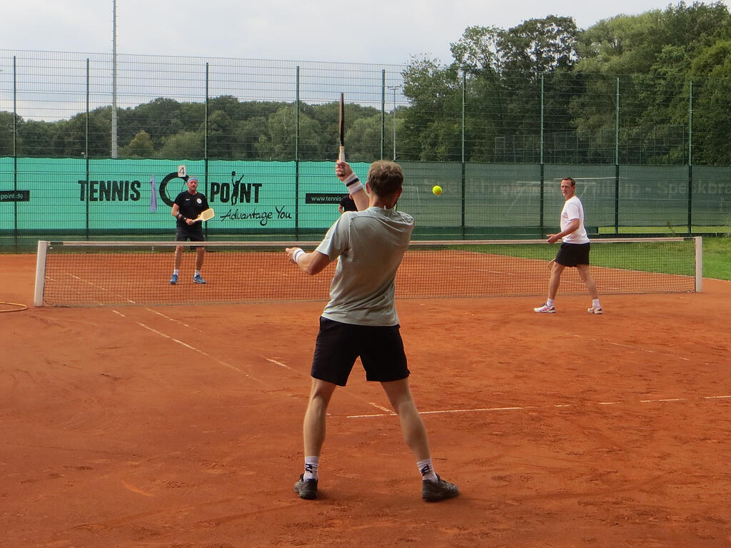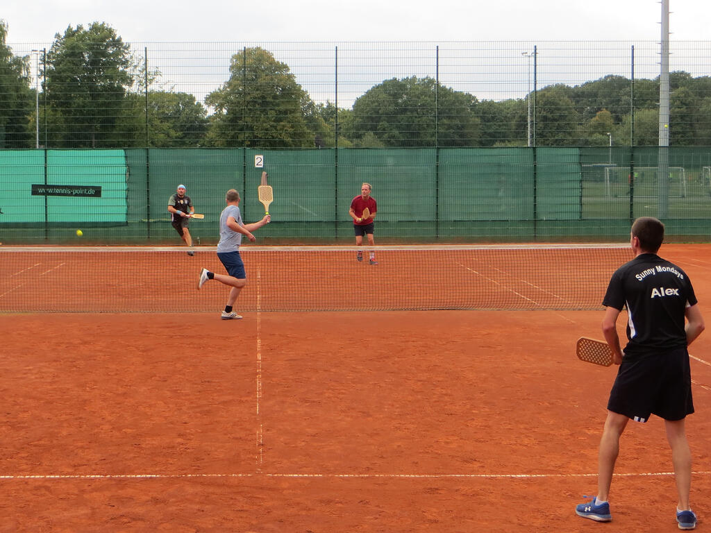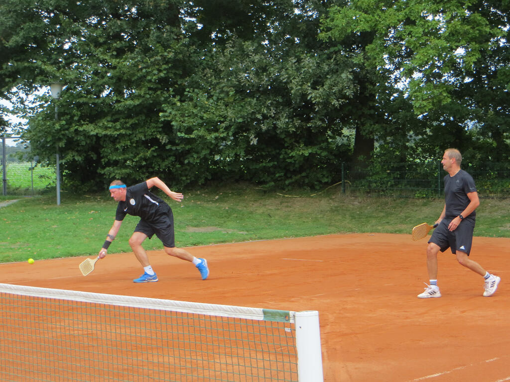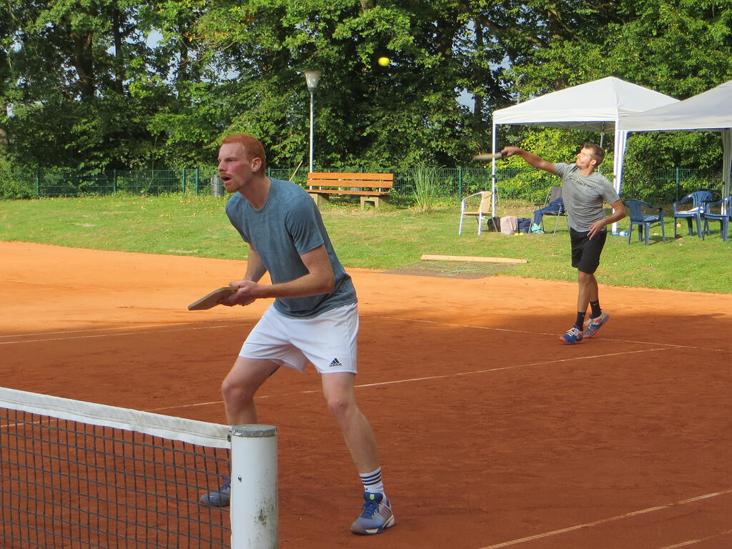 Im Herren Doppel der offenen Klasse war es eine sehr ausgeglichene und spannende Veranstaltung. Drei der vier topgesetzten Doppel wechselten schon frühzeitig von der Sieger auf die Verliererseite. Lars Anfang und Robin Paton hingegen setzten sich mit vier glatten Siegen ohne Satzverlust auf der Siegerseite durch und zogen ins Finale am 25.09. in Hiltrup ein. Hierbei schlugen die beiden u.a. das Duo Tim Weber und Lutz Becker, die dann ihrerseits auf der Verliererseite ohne Satzverlust blieben. Somit kommt es am Finaltag erneut zur Paarung Anfang/Paton gegen Weber/Becker.