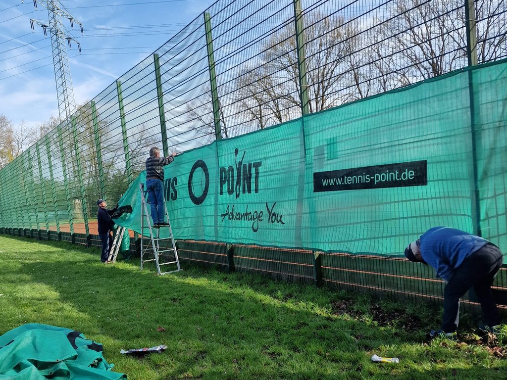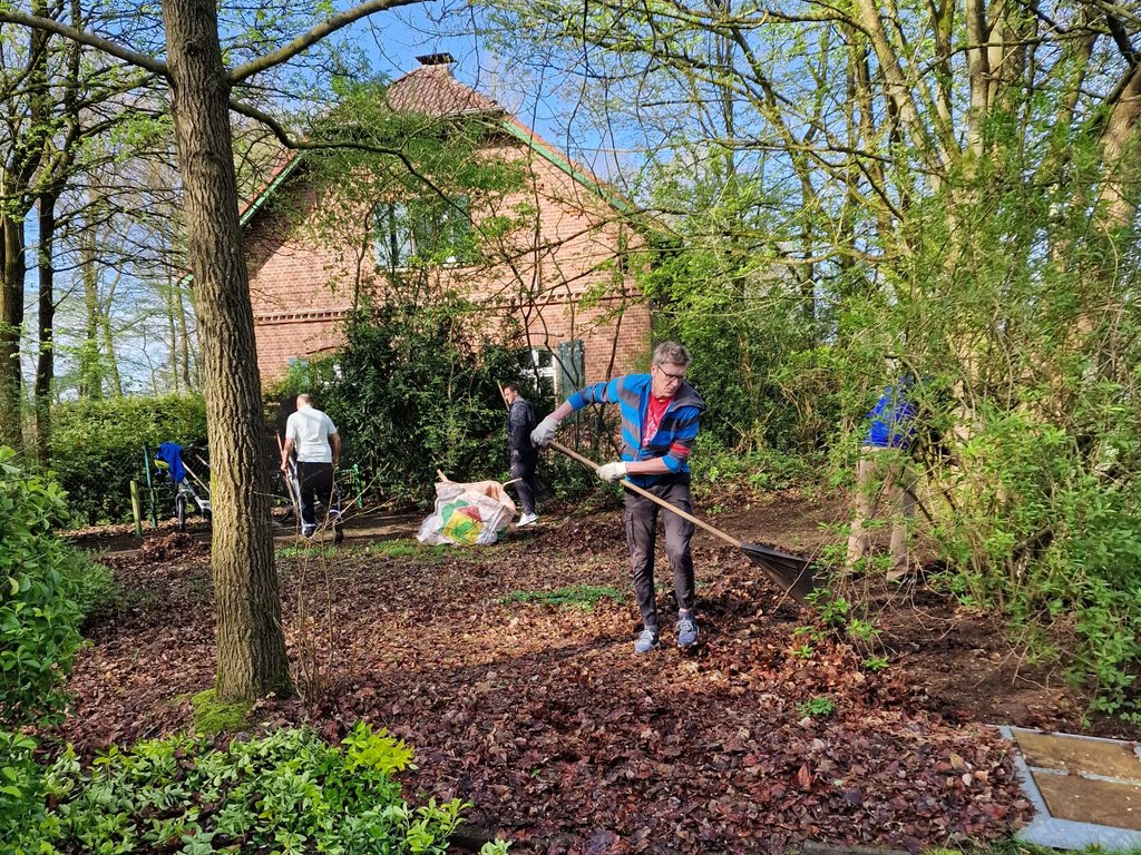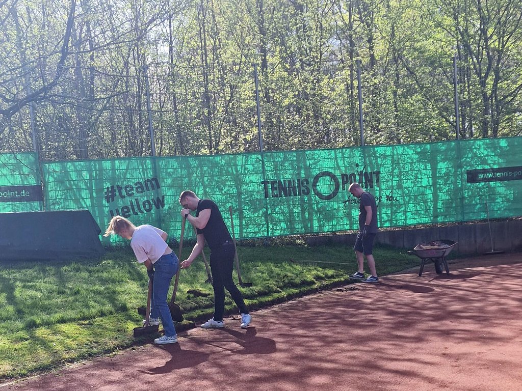 Bei fast schon sommerlichen Temperaturen über 20 Grad wurde die Anlage vom Laub befreit, die Windfänge wurden wieder aufgehängt, die Drainagerinnen gereinigt, die Sträucher und Bäume beschnitten und vieles mehr.